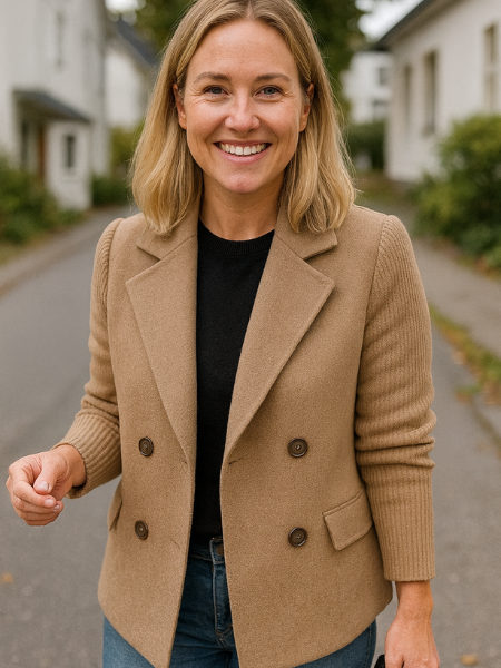 Elska þessa jakka! Hann er fullkominn fyrir kaldari eftirmiðdaga hér – hlýr, vandaður og heldur lögun sinni ótrúlega vel.