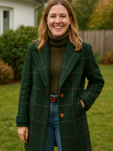 „Ég varð ánægilega hissa á því hversu mjúk og notaleg þessi kápa er. Passið er fullkomið fyrir mig og ermarnar eru einnig rétt lengd. Hún hefur afslappað útlit en er samt nógu glæsileg til að fara út í. Ég hef þegar fengið hrós fyrir hana!“